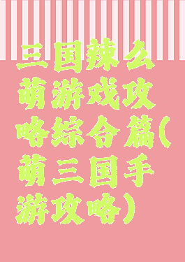 三国辣么萌游戏攻略综合篇(萌三国手游攻略)